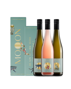 MOOON Wrapped Trio: 1 Grauburgunder, 1 Weissburgunder, 1 Rosé in unseren Geschenkboxen